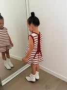 A new take on our much-loved Stripe Knit sets, the sweetest Cherry/Cream crochet set.